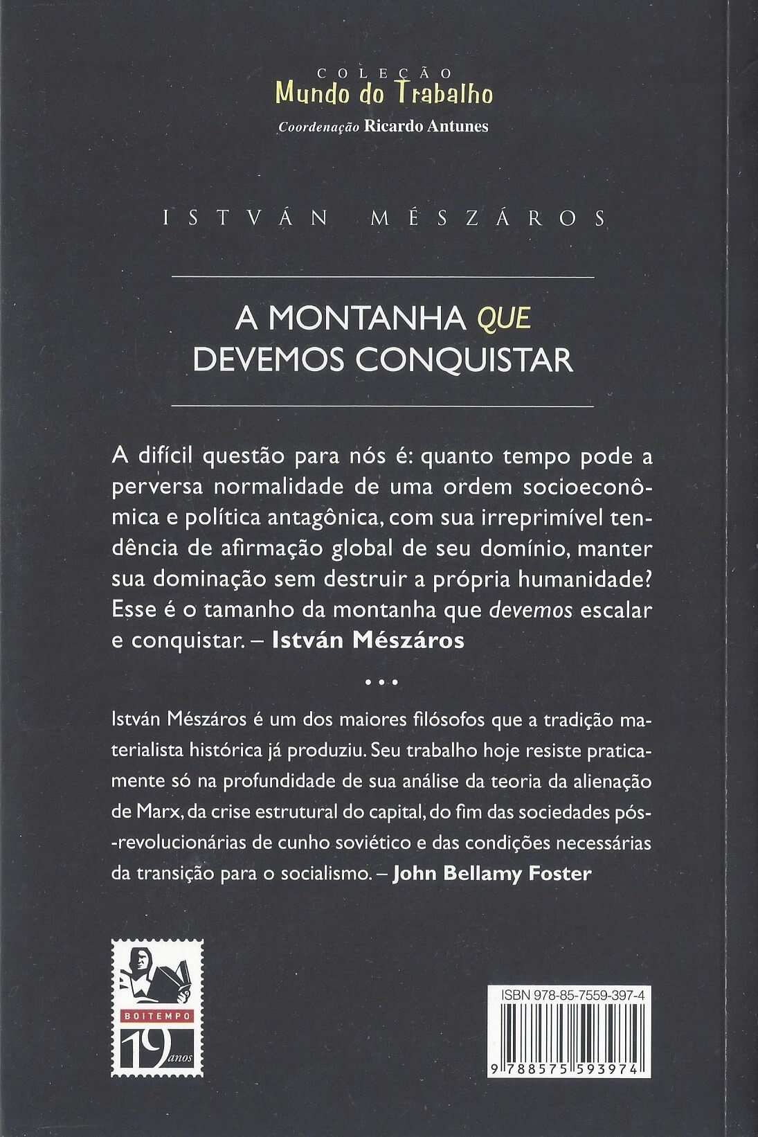 Em A montanha que devemos conquistar, o filófoso húngaro Istvan Mészáros aborda um tema que tem tradição no pensamento marxista: o Estado. Partindo de Platão e Aristóteles e fazendo de Hobbes e, especialmente, Hegel, seus principais interlocutores, o autor discorre não apenas sobre o Estado e o campo político em disputa, mas também sobre a sociabilidade capitalista numa época em que o sistema tornou-se efetivamente global. “As crises do capitalismo recolocaram o papel do Estado no centro do debate teórico. Em tempos de reflexões acadêmicas minimalistas e ultraespecíficas, István Mészáros emerge como um pensador fundamental”, afirma Ivana Jinkings, diretora editorial da Boitempo, no prefácio. “Seu trabalho dialoga criticamente com toda a produção relevante dos últimos 150 anos e navega dos clássicos aos contemporâneos com rigor e criatividade notáveis”. Em sete breves capítulos mais introdução e conclusão, Mészáros afirma que o Estado, tal como constituído historicamente, em vez de resolver, agrava os problemas sociais. O autor discute a possibilidade de novas formas de organização social, que, segundo ele, necessitam superar os antagonismos enraizados na ordem social do capital para surgir de modo coordenado e cooperativamente estruturado, desde seus menores meios de socialização até seus processos abrangentes de tomadas de decisão. A densidade e o alcance de sua crítica da ordem social vigente representam uma consistente base teórica para a construção de alternativas. (extraído de Google Books)