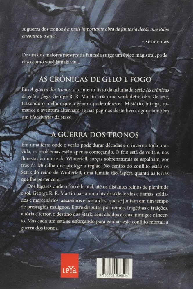Quando Eddard Stark, lorde do castelo de Winterfell, aceita a prestigiada posição de Mão do Rei oferecida pelo velho amigo, o rei Robert Baratheon, não desconfia que sua vida está prestes a ruir em sucessivas tragédias. Sabe-se que Lorde Stark aceitou a proposta porque desconfia que o dono anterior do título fora envenenado pela manipuladora rainha – uma cruel mulher do clã Lannister. E sua intenção é proteger o rei. Mas ter como inimigo os Lannister pode ser fatal: a ambição dessa família pelo poder parece não ter limites e o rei corre grande perigo. Agora, sozinho na corte, Eddard percebe que não só o rei está em apuros, mas também ele e toda a sua família. Quem vencerá a guerra dos tronos? (extraído de Google Books)