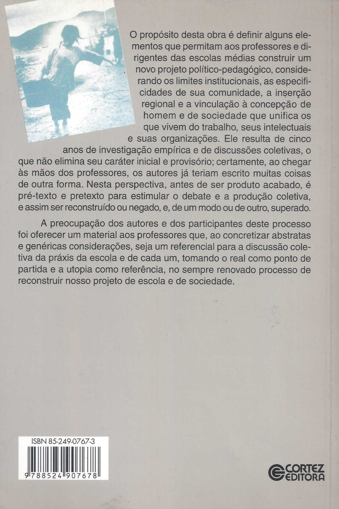 O propósito desta obra é definir alguns elementos que permitam aos professores e dirigentes das escolas médias construir um novo projeto político-pedagógico, considerando os limites institucionais, as especificidades de sua comunidade, a inserção regional e a vinculação à concepção de homem e de sociedade que unifica os que vivem do trabalho, seus intelectuais e suas organizações. Ele resulta de cinco anos de investigação empírica e de discussões coletivas, o que não elimina seu caráter inicial e provisório; certamente, ao chegar às mãos dos professores, os autores já teriam escrito muitas coisas de outra forma. Nesta perspectiva, antes de ser produto acabado, é pré-texto e pretexto para estimular o debate e a produção coletiva, e assim ser reconstruído ou negado, e, de um modo ou de outro, superado.