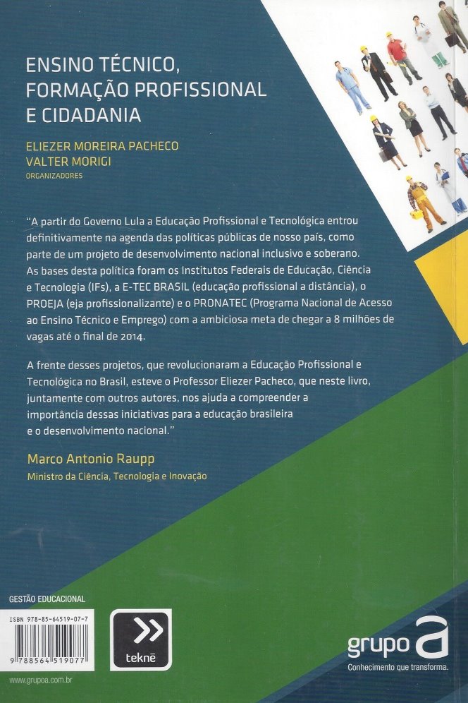 Neste livro, os autores mostram como a educação profissional e tecnológica entrou na agenda política do Brasil, que tem investido na formação profissional de jovens e adultos por meio dos Institutos Federais, da E-Tec Brasil, do Proeja e do Pronatec (programa nacional de acesso ao ensino técnico e emprego).