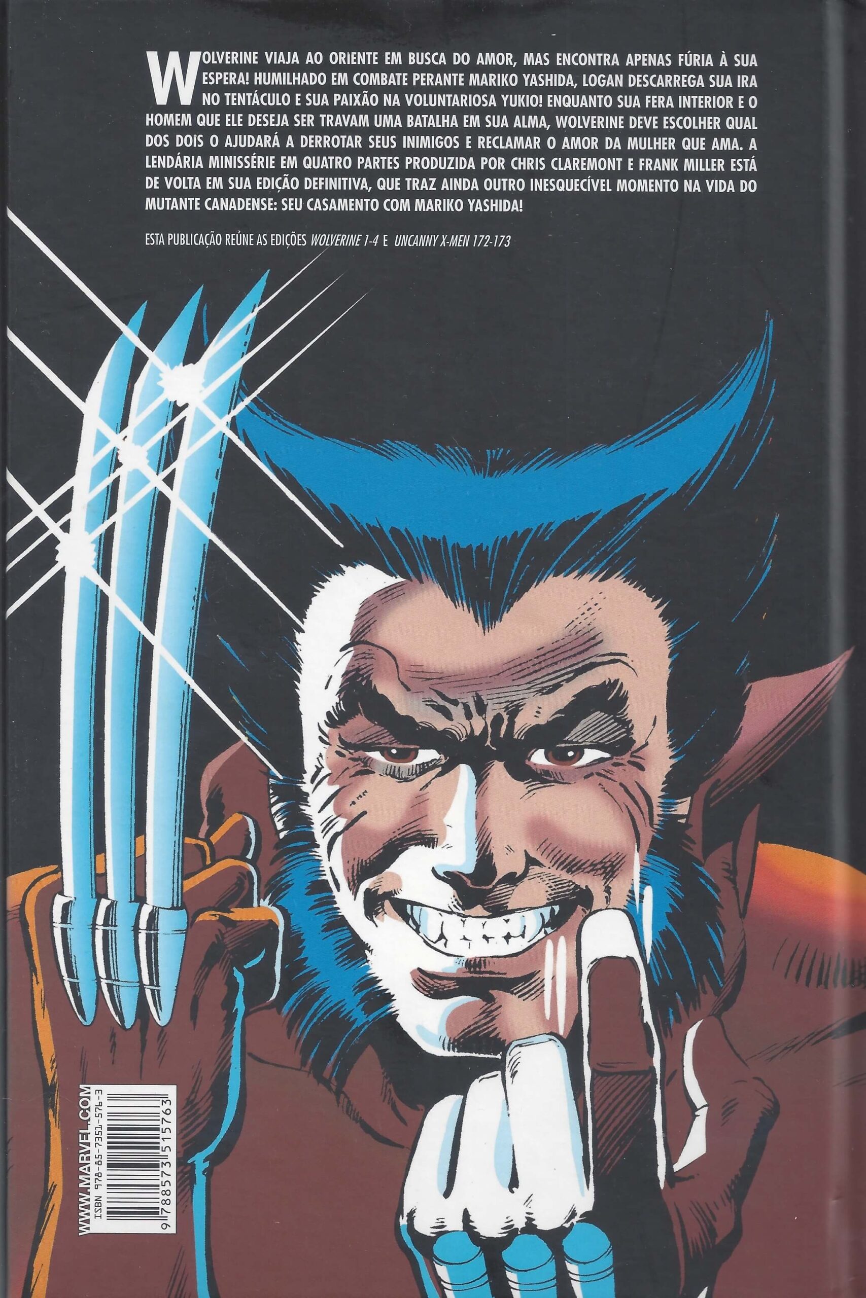 Wolverine viaja ao Oriente em busca do amor, mas encontra apenas fúria à sua espera! Humilhado em combate perante Mariko Yashida, Logan descarrega sua ira no Tentáculo e sua paixão na voluntariosa Yukio! Enquanto sua fera interior e o homem que ele deseja ser travam uma batalha em sua alma, Wolverine deve escolher qual dos dois o ajudará a derrotar seus inimigos e reclamar o amor da mulher que ama. A lendária minissérie em quatro partes produzida por Chris Claremont e Frank Miller está de volta em sua edição definitiva, que traz ainda outro inesquecível momento na vida do mutante canadense: seu casamento com Mariko Yashida! (extraído de Amazon)