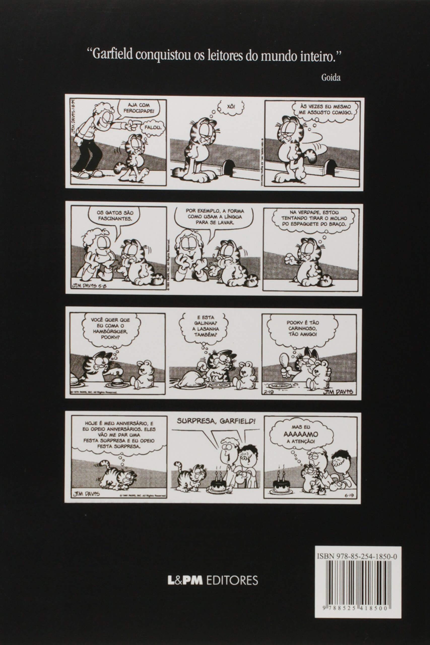 Aqui vocês vão encontrar 2.582 tiras de pura diversão. Um verdadeiro presente para os amantes de gatos e de quadrinhos, com histórias do bichano mais gordo e guloso de que já se teve notícia. Garfield apronta de tudo, ao lado de Jon (o fiel dono) e seu amigo Lyman, Pooky (o fofíssimo ursinho de pelúcia), Odie (o cachorro bobalhão que tanto sofre nas suas mãos) e Liz (a veterinária que foge das investidas de Jon). É impossível resistir ao charme desse felino. Com seu pêlo laranja, seu humor explosivo e vários quilos a mais, Garfield conquista a todos. É só não mexer na sua lasanha, deixá-lo dormir até tarde e não chamá-lo de fofo para que ele abra um sorrisão. Ah, e não convidar Nermal, o adorável gatinho dos pais de Jon, para visitá-lo nas férias. Porém não espere que Garfield saia correndo para caçar ratos, afinal ele não é um gato qualquer, mas o gato mais amado dos quadrinhos. Este lançamento especial reúne todos os dez volumes das tiras de Garfield já publicadas na Coleção L&PM Pocket. (extraído de Amazon)