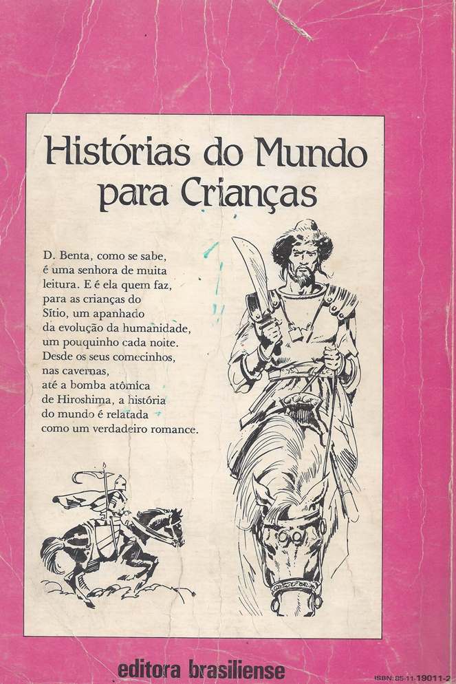Um dia Dona Benta recebe pelo correio o livro ‘Child’s history of the world’, de V. M. Hillyer. Depois de folhear o livro, decide contar aos netos a história do mundo, que, segundo ela, daria um verdadeiro romance. Com a turma toda reunida, começa a narrar os fatos de um jeito fácil de entender e encantador, que fazia todo mundo querer mais. É assim que Monteiro Lobato apresenta aos pequenos ‘História do mundo para crianças’. A avó de Narizinho expõe os acontecimentos de forma cronológica. O surgimento do sistema solar, do nosso planeta e da vida na Terra. Depois, a evolução do homem, a Idade da Pedra, as primeiras civilizações e assim por diante, até chegar ao século XX. As crianças aprendem sobre povos antigos, períodos históricos, grandes navegações, descobrimento do novo mundo e, inclusive, guerras e revoluções. As intervenções de Pedrinho, Narizinho e Emília, as curiosidades relatadas por Dona Benta e a linguagem informal dão graça à narrativa. Lançado pela primeira vez em 1933, ‘História do mundo para crianças’ passou por revisões feitas pelo autor, que inseriu novos acontecimentos, entre eles os capítulos sobre a Segunda Guerra Mundial e a bomba de Hiroshima. A nova edição preserva o texto original e traz comentários que atualizam, complementam e contextualizam o conteúdo. (extraído de Google Books)