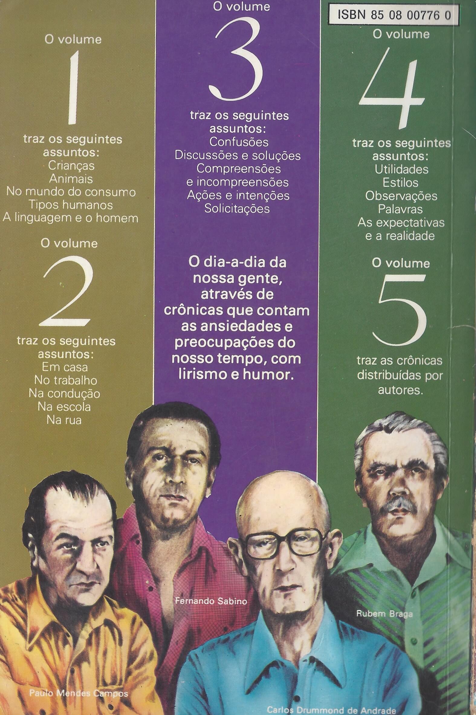 Coisas engraçadas e estranhas podem acontecer em todos os lugares. Só mesmo um grande cronista para transformar esse pedacinho da vida em uma história interessante. Com Fernando Sabino, Paulo Mendes Campos, Rubem Braga e Carlos Drummond de Andrade o leitor irá acompanhar de perto histórias cotidianas e verá o que o olhar do cronista faz com coisas que passariam despercebidas. (extraído de Google Books)