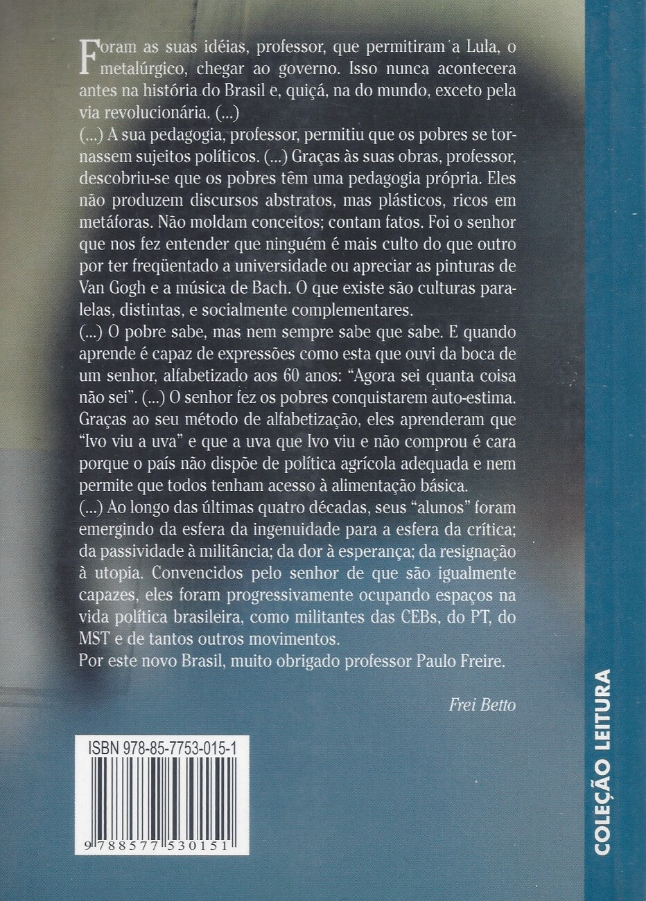 Na Pedagogia da autonomia, de 1996, Paulo Freire nos apresenta uma reflexão sobre a relação entre educadores e educandos e elabora propostas de práticas pedagógicas, orientadas por uma ética universal, que desenvolvem a autonomia, a capacidade crítica e a valorização da cultura e conhecimentos empíricos de uns e outros. Criando os fundamentos para a implementação e consolidação desse diálogo político-pedagógico e sintetizando questões fundamentais para a formação dos educadores e para uma prática educativo-progressiva, Paulo Freire estabelece neste livro novas relações e condições para a tarefa da educação. (extraído de Google Books)