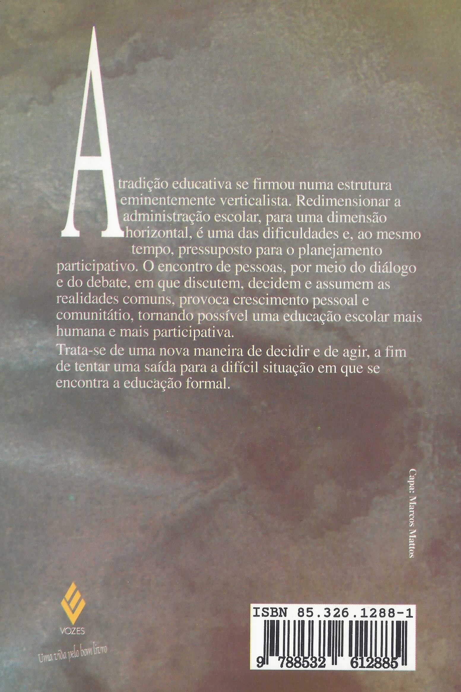 O planejamento participativo, compreendido como processo de ação participativa grupal, com pessoas interagindo em função de necessidades, interesses e objetivos comuns, é, no momento, a metodologia mais eficaz no que tange ao envolvimento e engajamento das pessoas de uma comunidade escolar. O autor, consciente da importância desse método, inicia com uma reflexão sobre participação e uma proposta de planejamento participativo, nos remete aos processos de elaboração e vivência do mesmo, faz as devidas avaliações e apresenta exemplos, contribuindo, assim, para o enriquecimento, aprofundamento e vivência do planejamento participativo na educação formal. (extraído de Google Books)