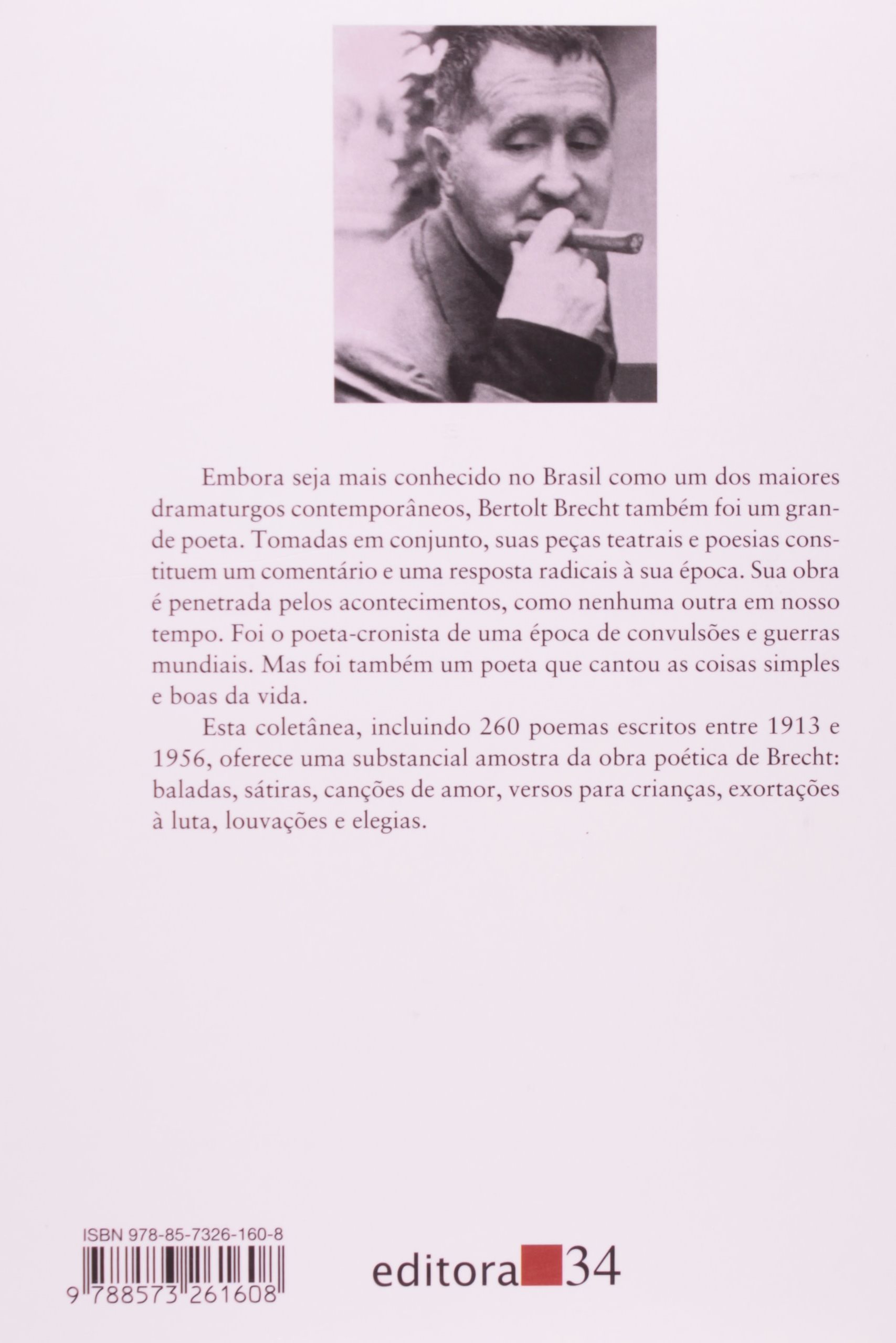 Nova edição revista da mais importante antologia da poesia de Brecht no Brasil. A Obra poética de Brecht, tão contundente quanto o seu teatro, é ao mesmo tempo “lírica e política”, como dizia Walter Benjamin. Este volume contém 260 poemas, entre baladas, sátiras, canções e exortações à luta, além de uma cronologia da vida e das obras de Brecht: “Fôssemos infinitos/ Tudo mudaria/ Como somos finitos/ Muito permanece”. (extraído de Google Books)
