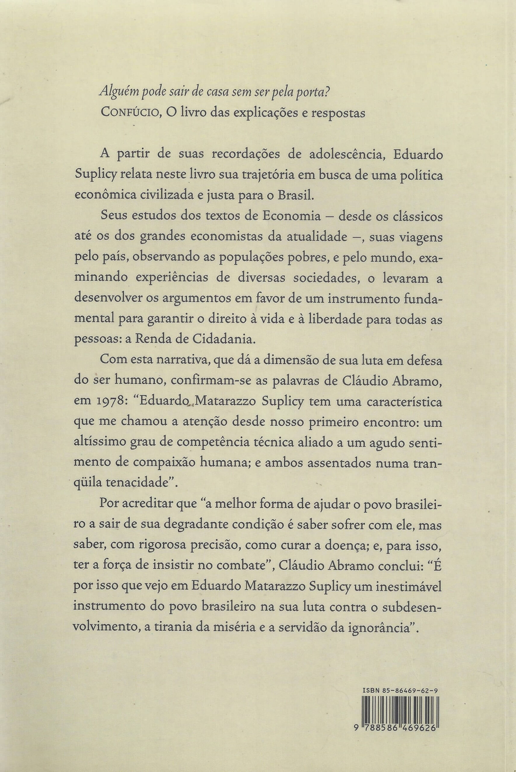 A partir de suas recordações da adolescência, o autor relata nesse livro sua trajetória em busca de uma política econômica civilizada e justa para o Brasil. Seus estudos dos textos de Economia, desde os clássicos até os dos grandes economistas da atualidade, suas viagens pelo país, observando as populações pobres, e pelo mundo, examinando experiências de diversas sociedades, o levaram a desenvolver os argumentos em favor de um instrumento fundamental para garantir o direito a vida e a liberdade para todas as pessoas: A Renda de Cidadania. (extraído de Amazon)