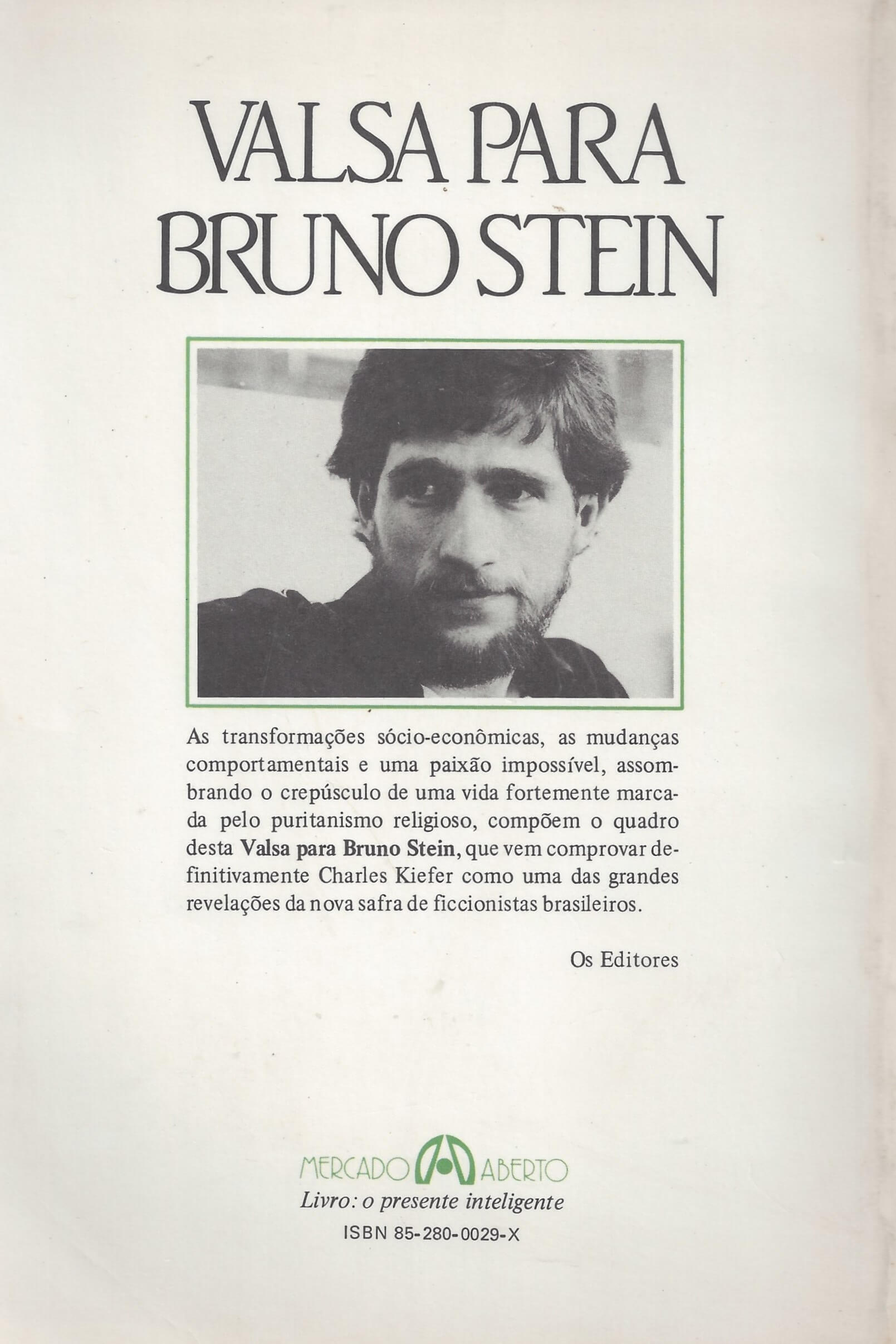 VALSA PARA BRUNO STEIN surpreende o leitor com o ritmo sinuoso e a densidade dramática e confirma Kiefer como um dos principais nomes da literatura brasileira contemporânea. Publicado originalmente em 1986, o livro dá continuidade ao projeto da Editora Record de reeditar toda a obra de Kiefer com um novo projeto gráfico. Consagrado no Sul, onde já vendeu mais de 300 mil livros, e vencedor de três prêmios Jabuti, o gaúcho conta, em VALSA PARA BRUNO STEIN, uma história de amor repleta de sutis complexidades. (extraído de Google Books)