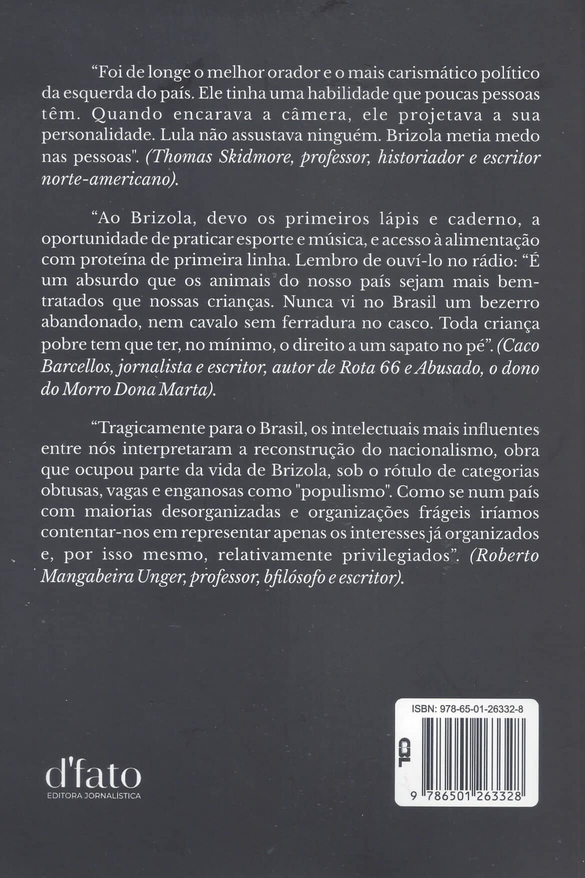 Leonel de Moura Brizola não é uma personalidade que se encaixe nos padrões tradicionais dos políticos. Carismático, arrojado, seria o clássico demagogo, que cativa a massa instintiva e instantaneamente. Mas não era só isso. Era um gestor, um planejador, um realizador, tudo isso temperado por uma capacidade de trabalho descomunal e uma refinada sensibilidade para a questão social. Este trabalho jornalístico, resultado de, pelo menos, duas décadas de pesquisa, entrevistas e reportagens, está recheado de curiosidades, vitórias, derrotas, decepções, amores, fúrias, perseguições, reconciliações, conchavos, e dezenas de páginas ilustradas com fotos, antigas e atuais, charges e reproduções de jornais.
